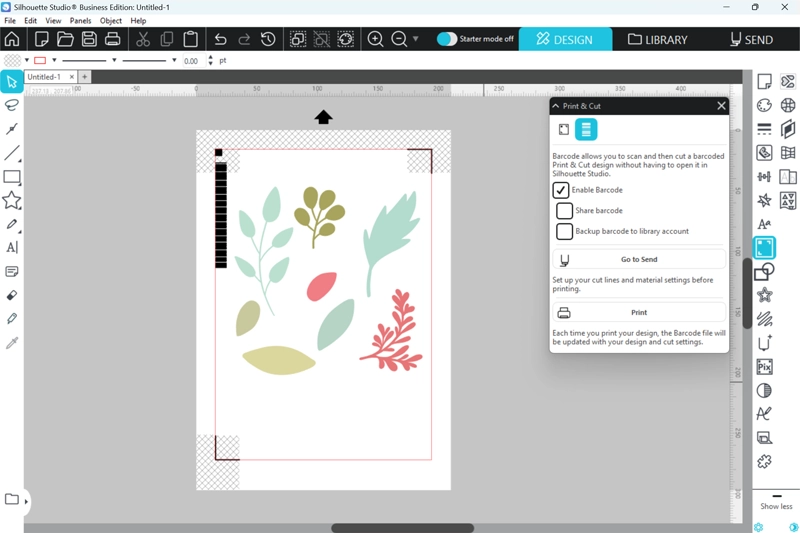 Silhouette Studioのバーコード機能は、プリント&カット作業をより効率的に行うための補助機能です。印刷したデザインにバーコードを付与し、カッティングマシンがそのバーコードを読み取ることで、カット位置を自動認識します。