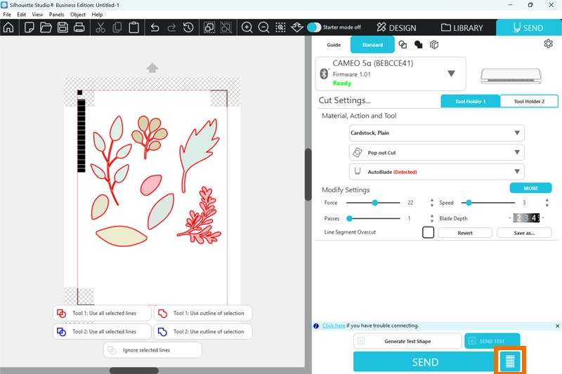 9. 送信ボタンの右側にあるバーコードマークをクリックすると、マシンが自動的にバーコードを読み取りカットを行います。