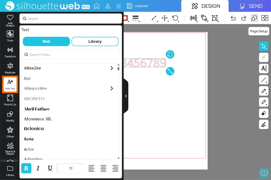 テキストツールを選択してワークスペースの任意の場所でクリックすると、文字の入力フィールドが表示されます。