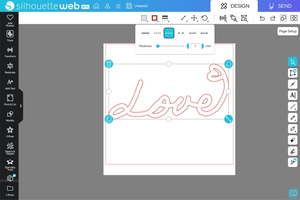 ブラシツールは自由に線を描いてデザインできるツールです。ペンで絵を描く感覚で使えます。このツールで描いた線は、スタイラスやマウスのボタンを離すまで途切れることなく描画され続けます。