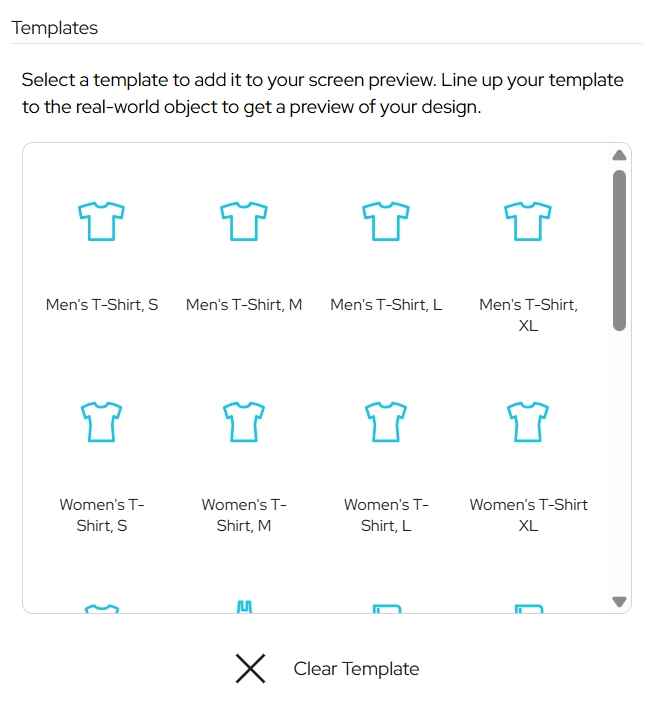 Tシャツやエプロン、トートバッグなど、様々な素材の輪郭を表示します。素材とデザインのおおまかなマッチングを確認することができます。