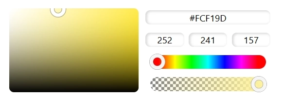カラーエリア内でクリックすることで色を選択することができます。また、HEXコードやRGB値を直接入力して色を指定することも可能です。