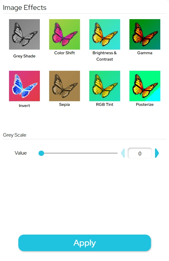 効果を指定しApply(適用)をクリックすると、画像に効果が適用されます。