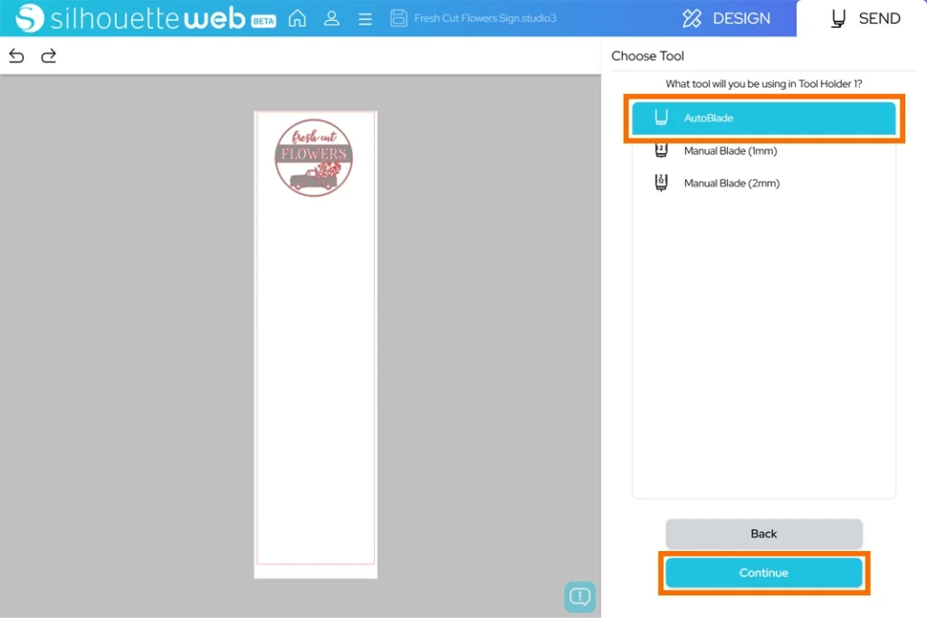 4. ツールの種類に「AutoBlade(オートブレード)」を選択し、「Continue」をクリックします。