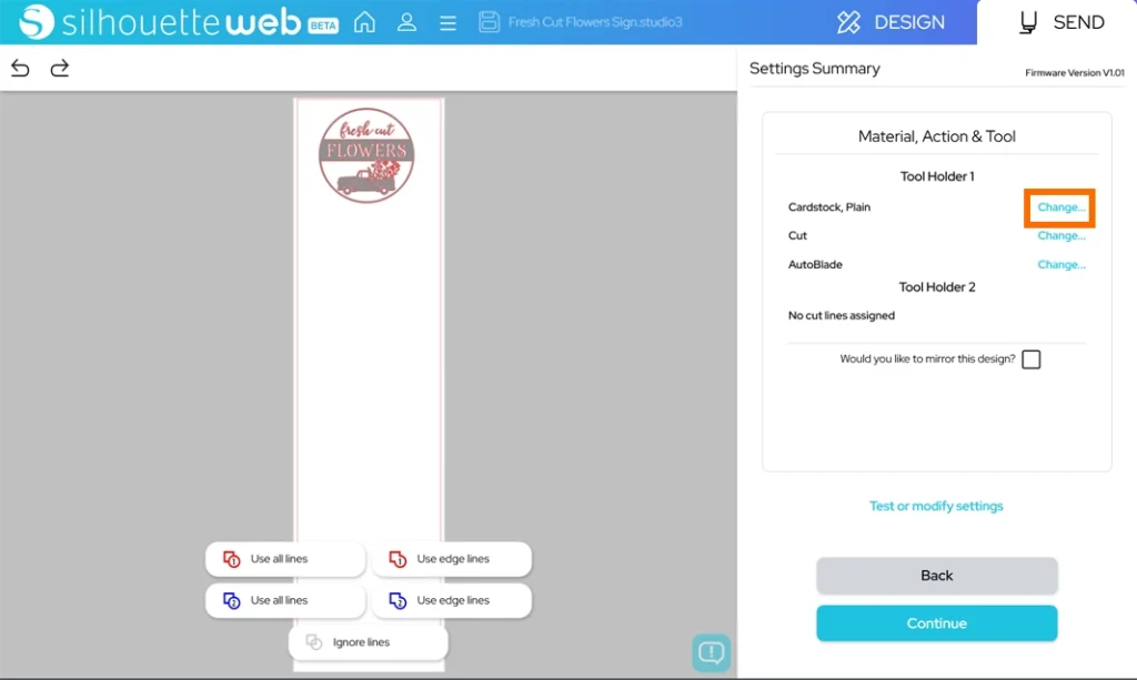 8. 「Send(送信)」をクリックして、カットデータをマシンに送信します。