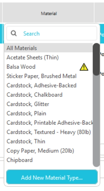 クリックすると使用する素材を指定します。