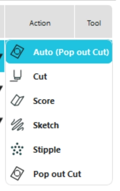 カットやスケッチなど、指定したアクションを行うかどうかを設定します。チェックを外すと、その線/塗りつぶし/レイヤーはカットされません。
