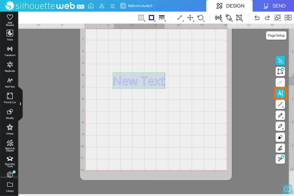 1. 画面右側の[テキストツール]をクリックし、ワークスペースをクリックします。