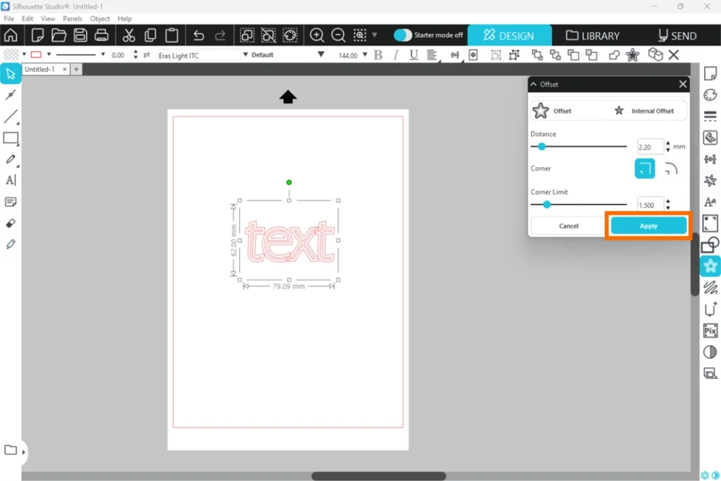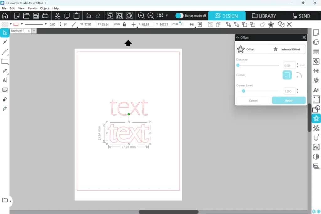 3. テキストを選択した状態で [オフセット] ボタンをクリックします。
