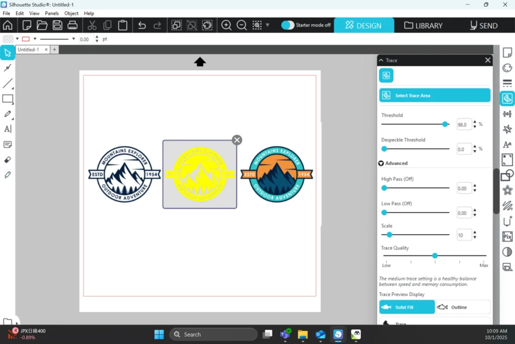 トレースしてカットラインを作成し、背景から画像を切り離します。クリックするとトレースが実行されます。