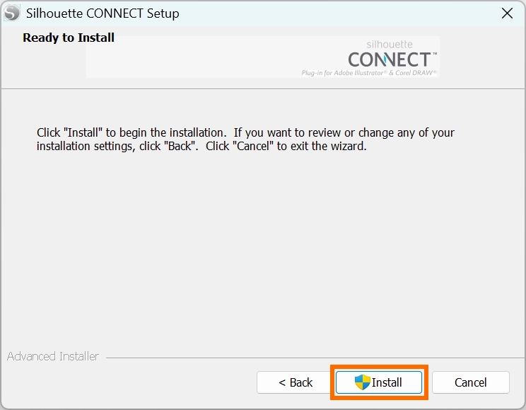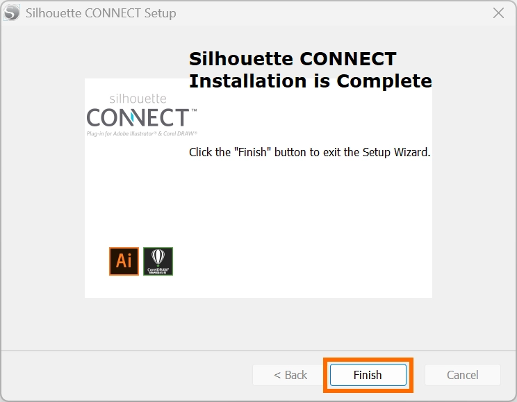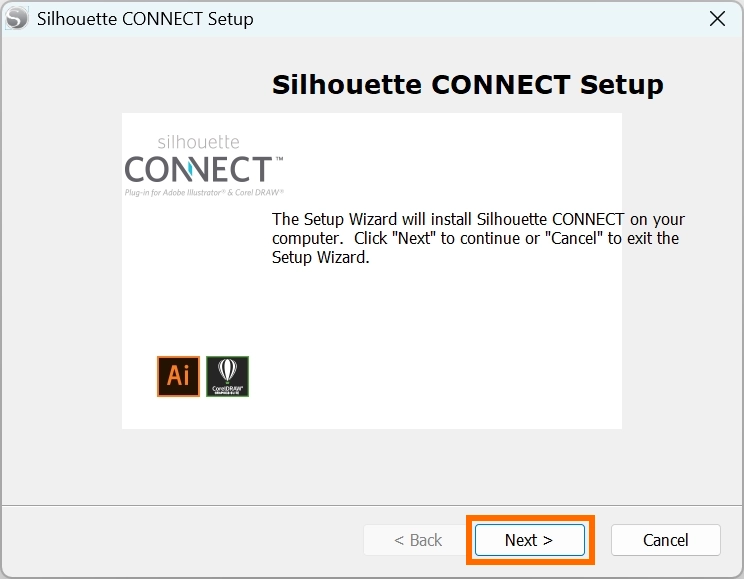 • Illustrator や CorelDRAW を開いている場合は、Silhouette CONNECTのインストール前に必ず終了してください。Illustrator や CorelDRAW を開いたままインストールを行うとホストアプリケーションとして認識されず、Silhouette CONNECT を正しくインストールすることができません。