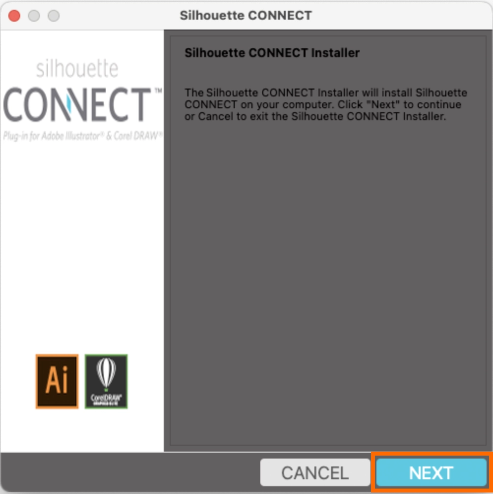 - Illustrator や CorelDRAW を開いている場合は、Silhouette CONNECTのインストール前に必ず終了してください。Illustrator や CorelDRAW を開いたままインストールを行うとホストアプリケーションとして認識されず、Silhouette CONNECT を正しくインストールすることができません。
