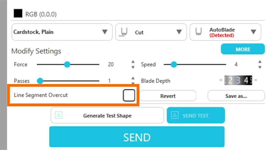 プリセットされたカット条件を使用する場合でも、使用するカッターブレードの状態によっては細かい調整が必要になる場合があります。