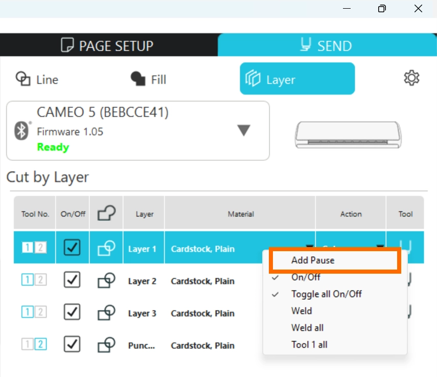 4. 線、塗りつぶし、またはレイヤー上で右クリックし、[ 一時停止を追加する ]をクリックします。