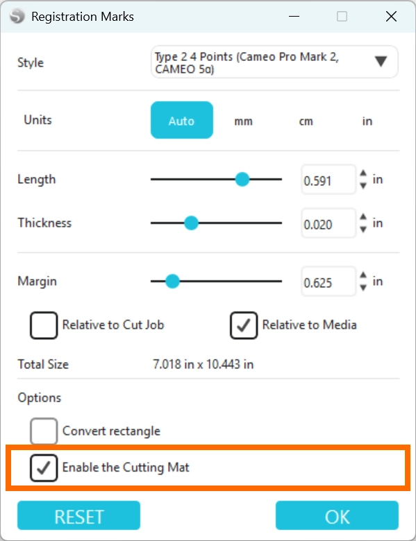 カッティング用台紙を使用する場合は「カッティング用台紙を有効にする」にチェックを入れてください。