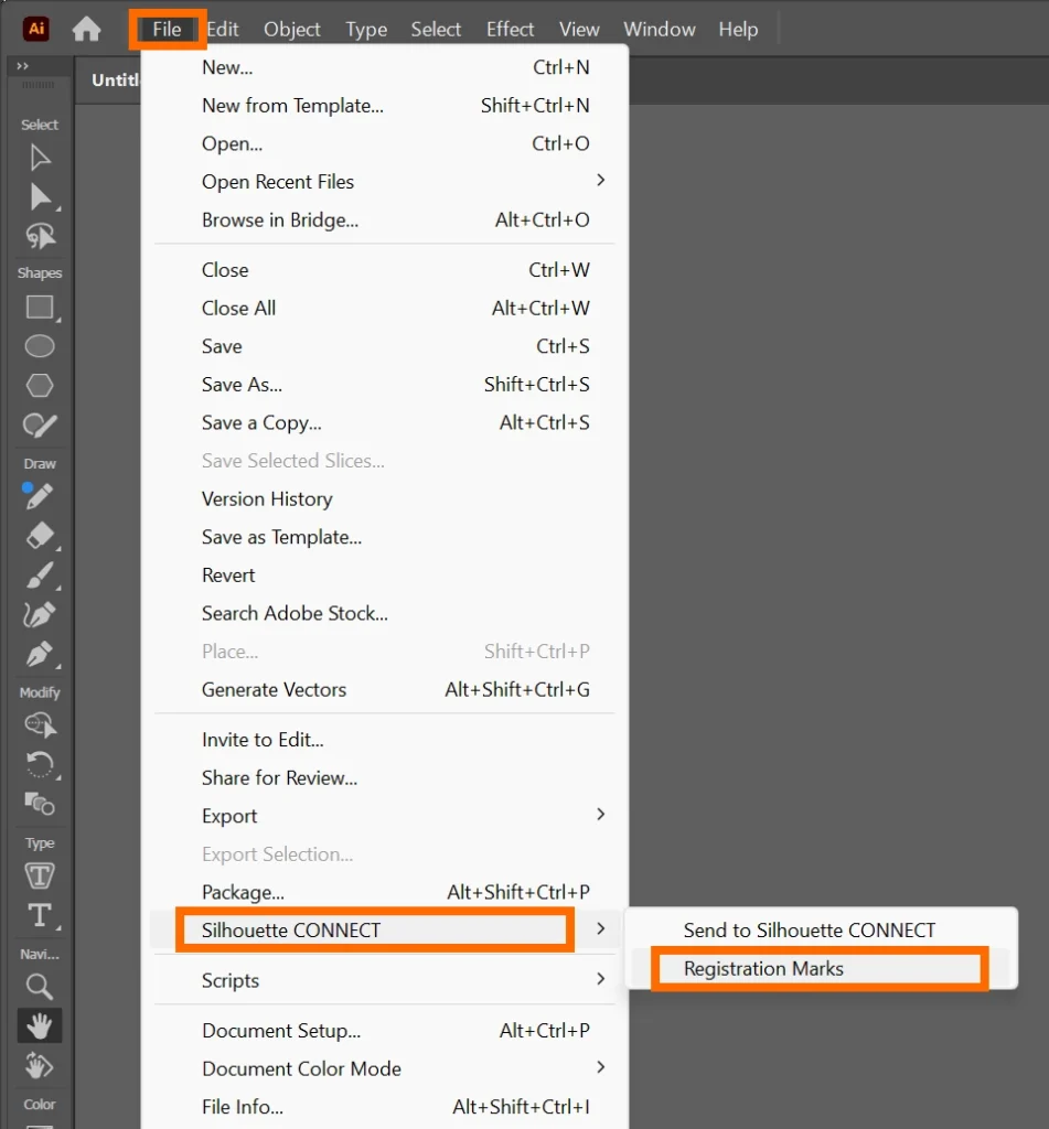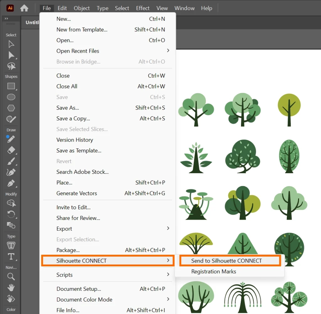 9. Adobe Illustratorのファイルメニューをクリックし、「Silhouette Connect」を選択します。