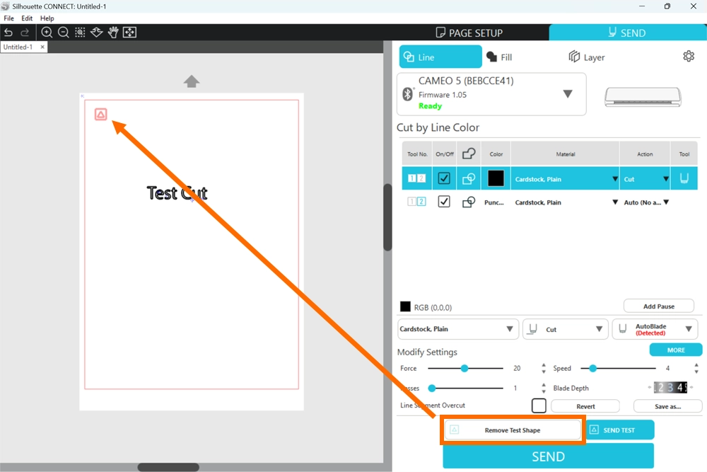 20. メディアをマシンにセットし、テストカットを行います。