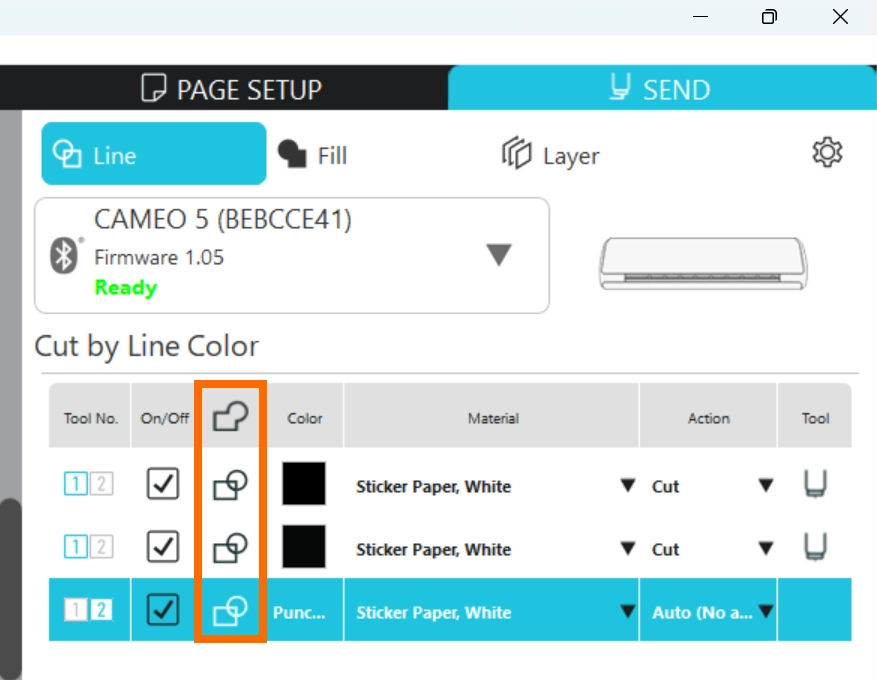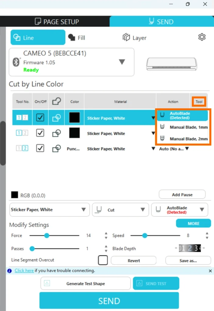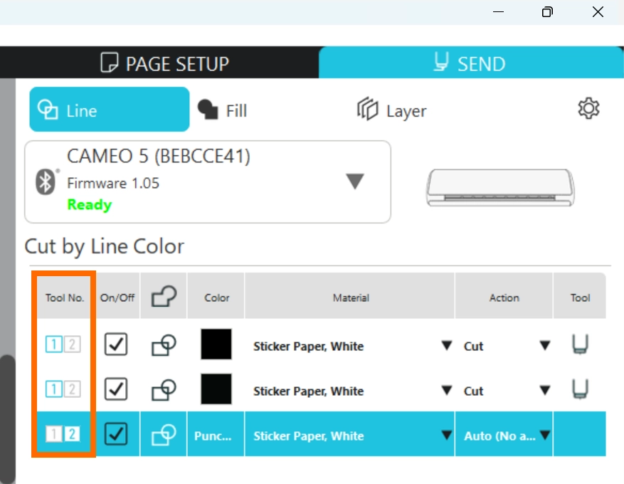 19. マシンにツールをセットすると、Silhouette Connectが自動検知してツール種類を表示します。
