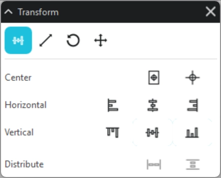 選択したオブジェクトを全て 上 / 中心 / 下 に揃えます 。