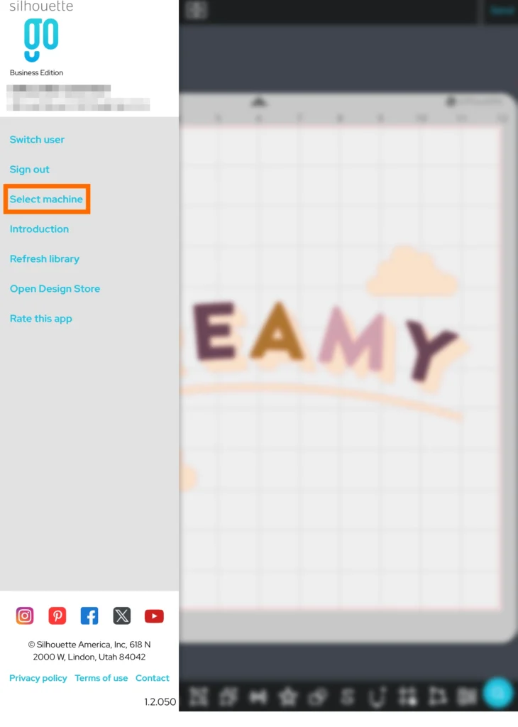 1. サイドメニューから、「マシンを選択」をタップして、マシンを選択します。