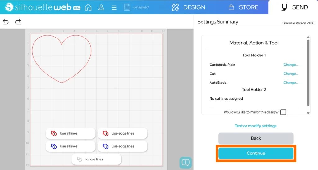 5. ツールとメディアのセットが完了したら「Send」をクリックし、マシンにカットデータを送信します。