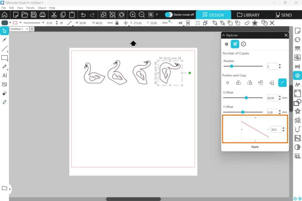 これらを設定して [ 適用」 ] ボタンをクリックすると、オブジェクトが指定通りに複製されます。