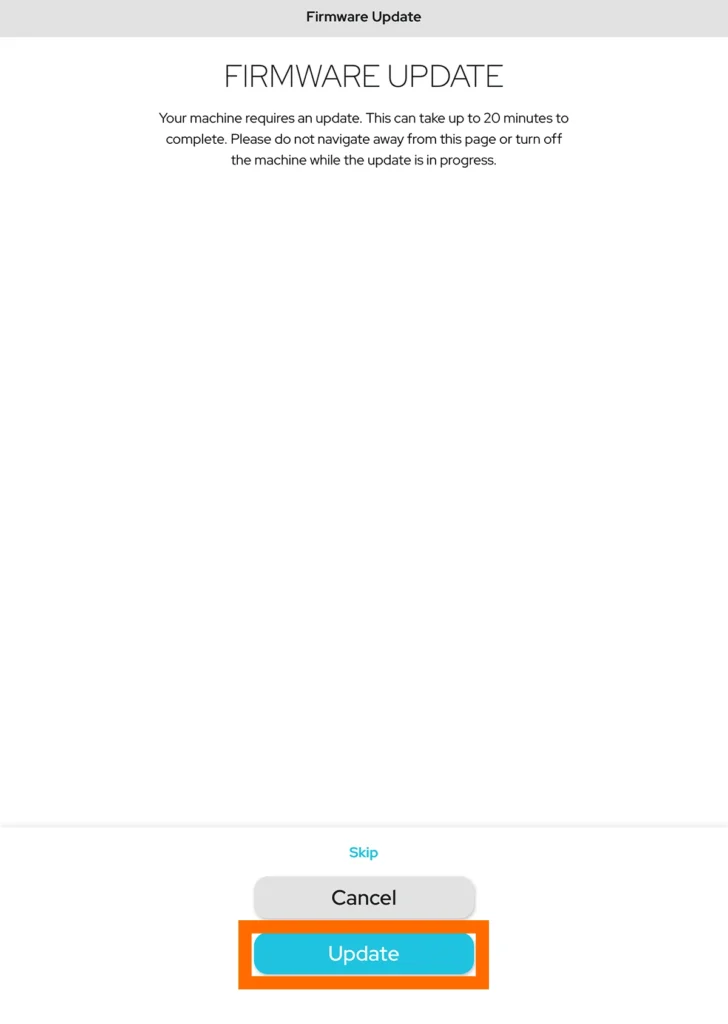 Silhouette GOに更新可能なファームウェアのメッセージが表示された時は、画面の「アップデート」ボタンをタップして更新を行ってください。