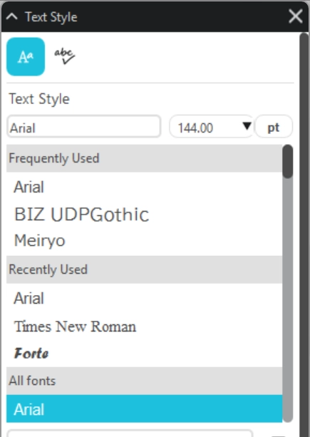 テキストの書式パネルでは、文字のフォントやサイズ、行間隔などの書式を設定することができます。