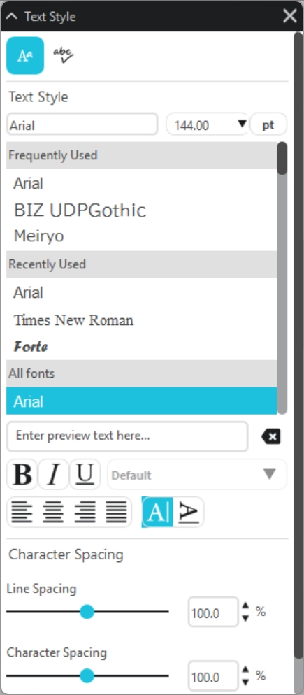 文字の入力にはコンピューターにインストールされているフォント(TTFおよび一部のOTF)を使用することができます。
