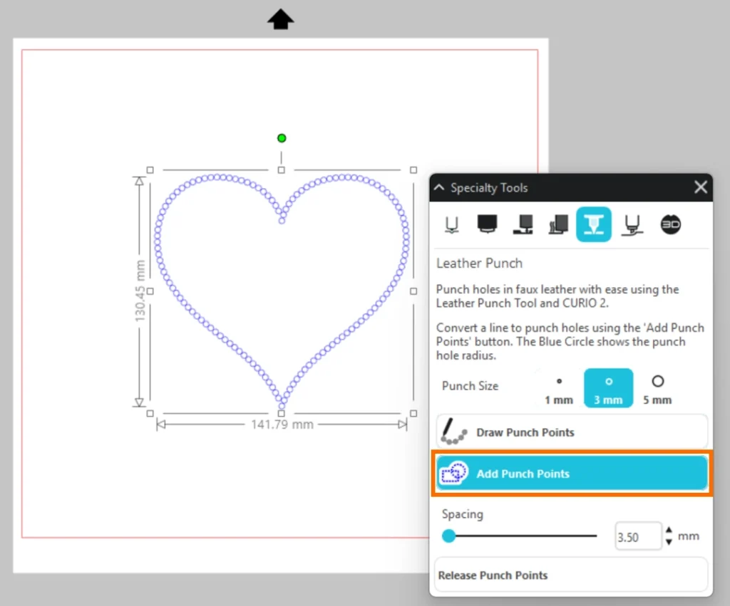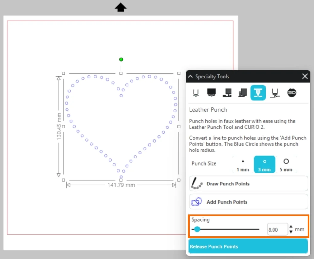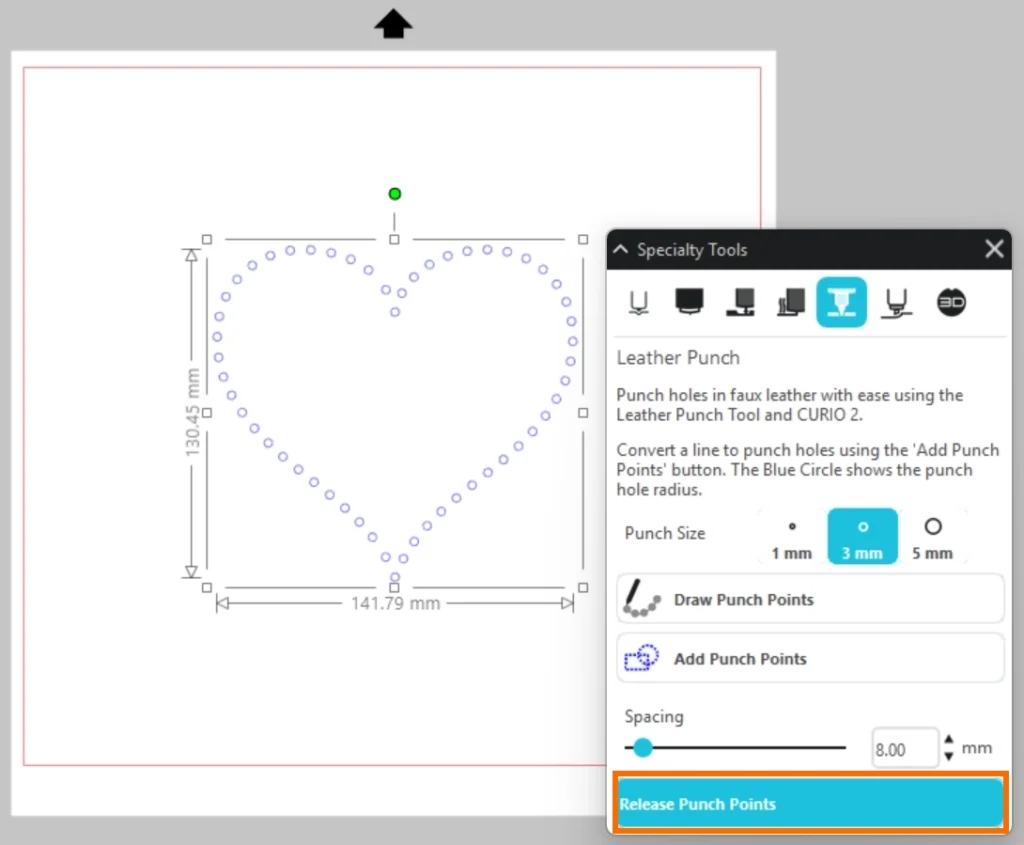 パンチポイントのサイズや間隔を設定しパンチポイントを追加したら、「パンチポイントをリリース」をクリックして、オブジェクトに効果を適用します。