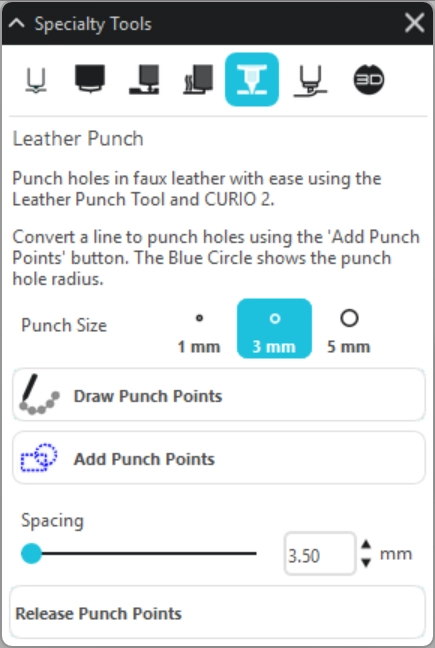 特殊ツールパネル – レザーパンチツール