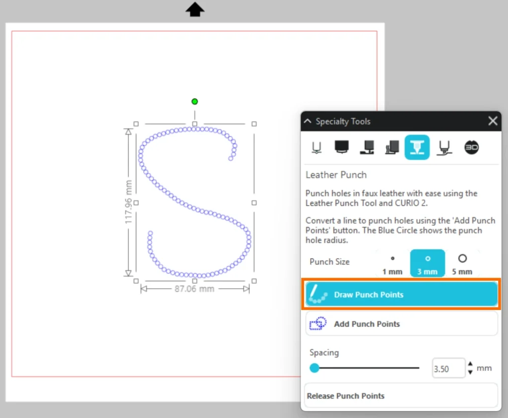また、ドラッグしながらフリーハンドでパンチポイントを描画することもできます。