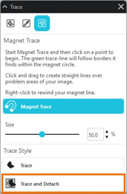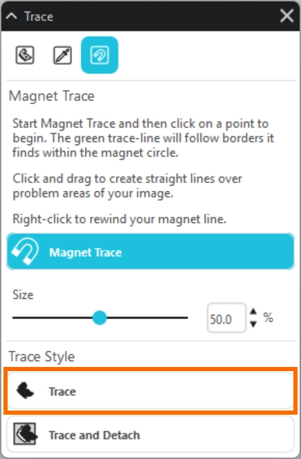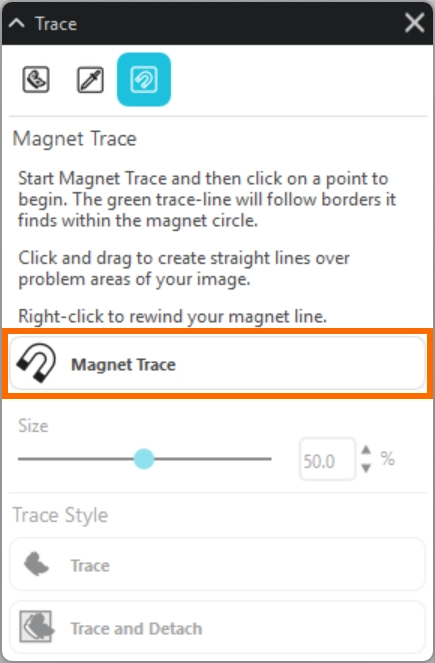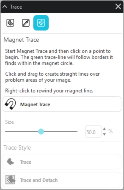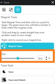 マグネットトレースパネルでは、挿入した画像をなぞってトレースをおこない、カットラインを作成します。