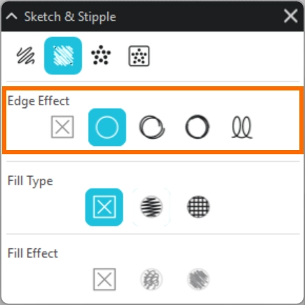 選択したオブジェクトの輪郭部分に適用するスケッチ効果を指定します。