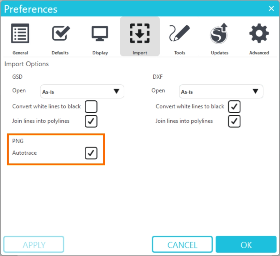また、環境設定の「インポート」の中にある「自動トレース」にチェックを入れると、PNG形式のファイルはインポートすると自動的にカットラインが生成されます。