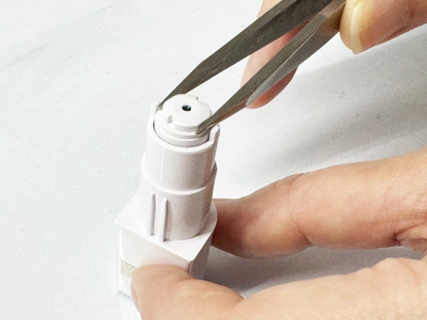 ピンセットで刃先キャップをつまんで反時計方向に回し、取り外します。