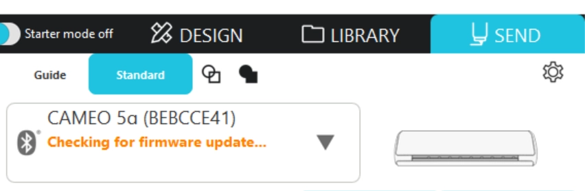 Silhouette Studioにおいて、マシンのステータスが「ファームウェアのアップデートを確認中」を表示されたまま先へ進まない場合、マシンとパソコンの再起動を行ってください。