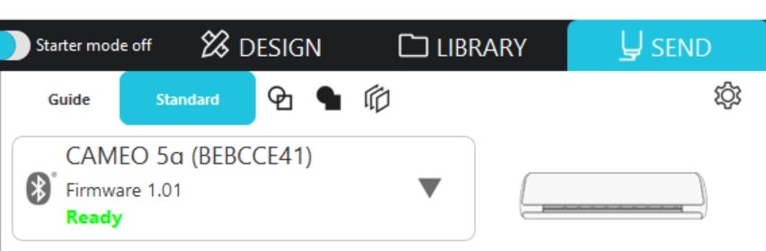 4. Silhouette Studioを起動し、送信パネルでパソコンとマシンを接続します。